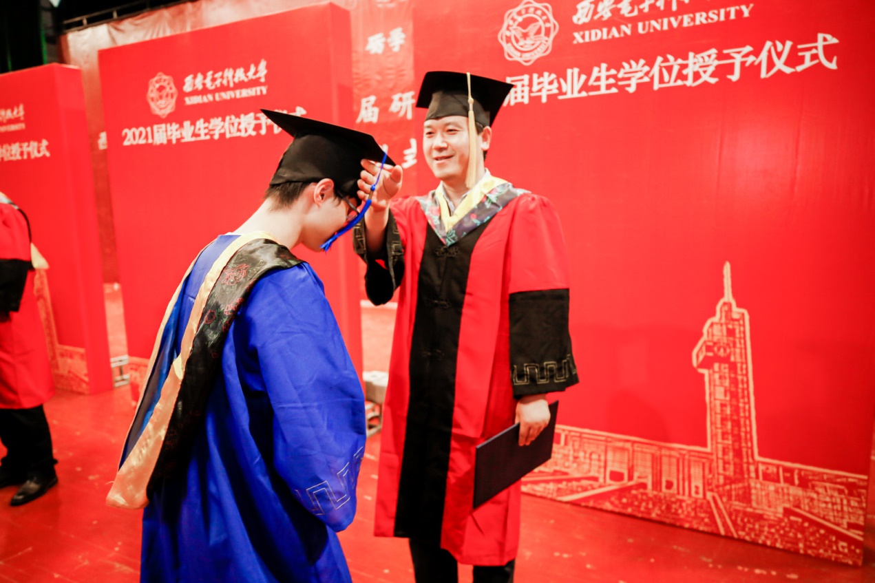 (通讯员 黄彩红 何敏之)庆西电九秩华诞,传三系奋斗精神;勇前行初心不改,瞰千里鸿鹄高飞。6月23日,太阳集团www06382021届本科毕业生学位授予仪式和研究生毕业生学位授予仪式先后在南北两校区成功举办。西安电子科技大学副校长王泉教授出席仪式并为毕业生授位。学院党委书记李青山,执行院长崔江涛,学院教授委员会主任苗启广,副院长沈玉龙、宋胜利、万波为2021届937名本科毕业生以及506名硕博士毕业生现场一一拨穗授位。学院领导张卫东、赵韩强、张莹莹,毕业班辅导员、学院办公室人员和教师代表出席了仪式。仪式由院党委书记李青山主持。