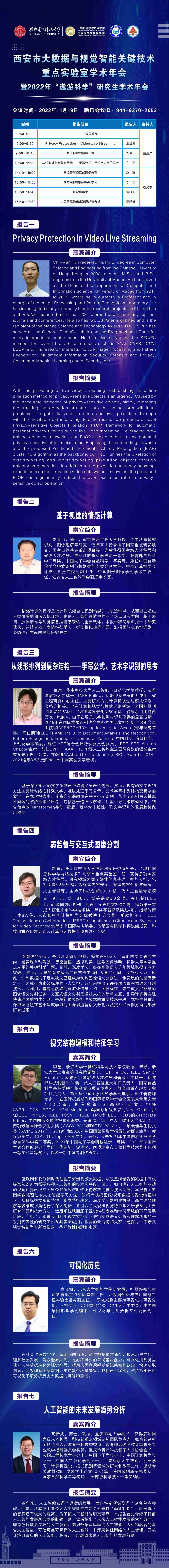 西安市大数据与视觉智能关键技术重点实验室学术年会暨2022年“遨游科学”研究生学术年会报告会预告(一)